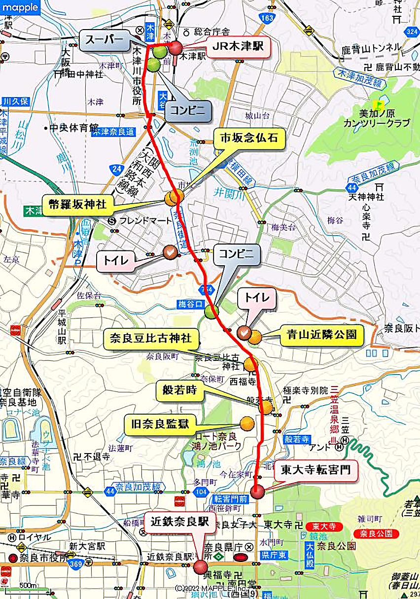 JR木津駅ー幣羅坂神社ー青山近隣公園ー般若寺